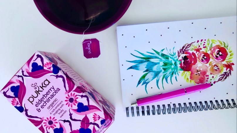 Stretch/yoga samt ett stort glas vatten är de rutiner jag håller fast vid alla dagar. Så ofta jag kan försöker jag att sitta ner en stund i soffan med en kopp te, lugn musik och mitt block för att skriva några sidor ”morning pages”*. De positiva effekter jag märkt av detta är att jag blir lugnare i sinnet, slipper tankar som snurrar, kommer på sånt jag glömt bort och blir också mindre hjärntrött under dagen. I samband med morning pages kommer jag som sagt ofta på saker jag glömt bort vilket gör att jag gärna planerar min dag/vecka samtidigt och skriver ner saker att göra i min analoga kalender.